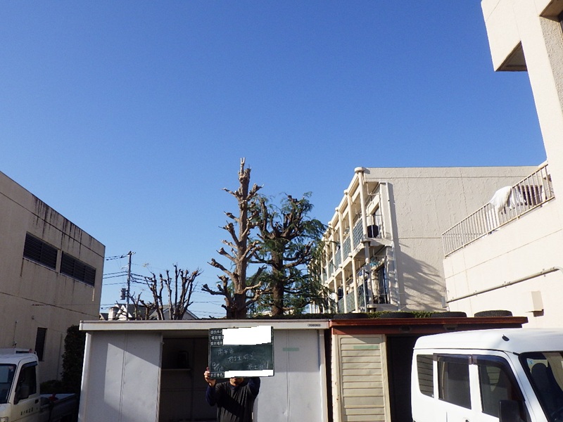 - クスノキとイチョウの強剪定